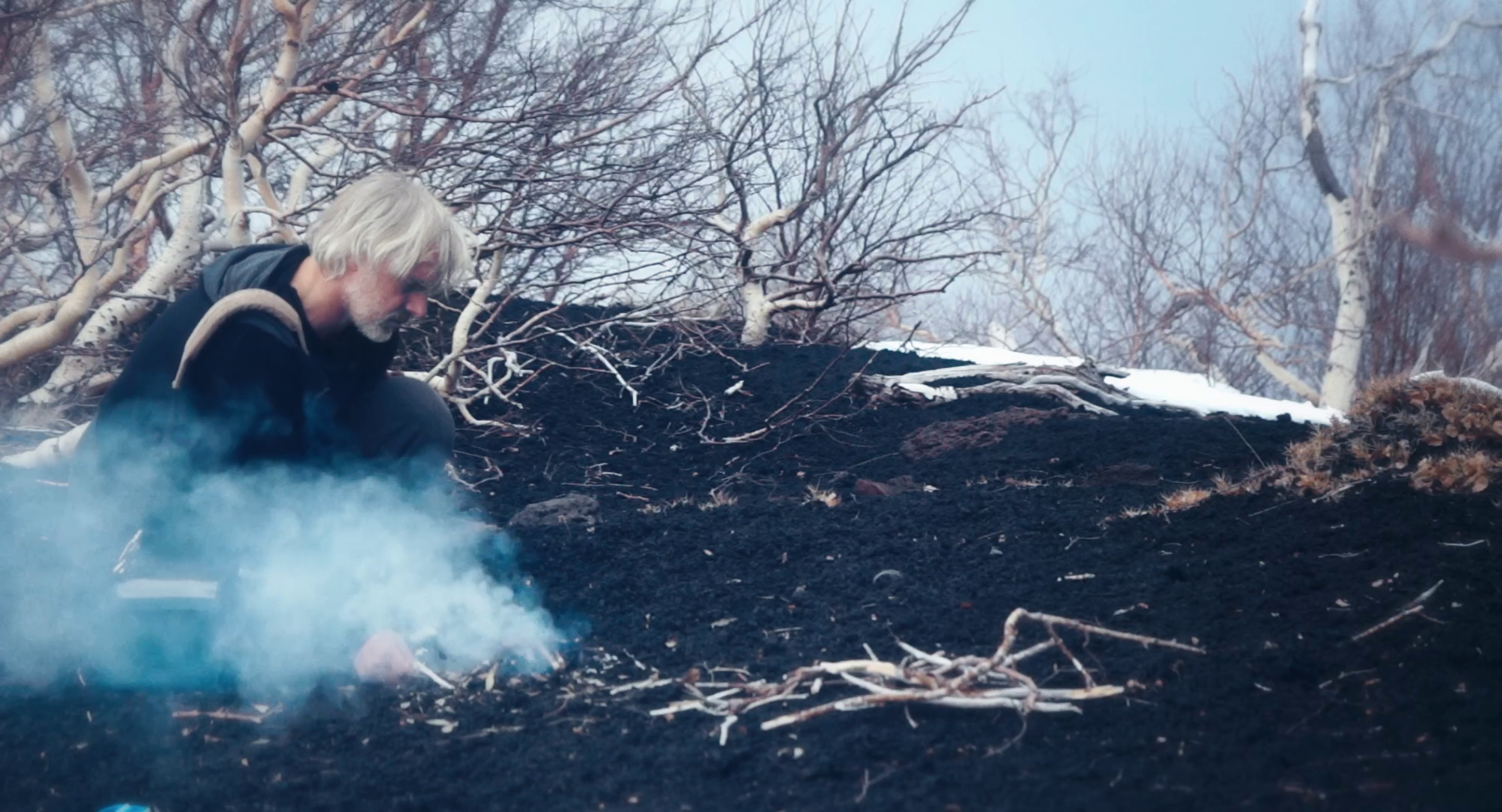 When one leaves in the night, the other remains near the fire that threatens to die out. This is the story of a man abandoned by his lover, who replenishes the fire. The director, who performs his own role, invents ways to survive his misery. To save his neck, to be reborn, who knows, he turns on the camera. He offers us not only a mirror of our own distress, but also the luxury of a possible rebirth. Between immersion in nature and road movie, the film plunges us into a suspended time, between poetry and humor.